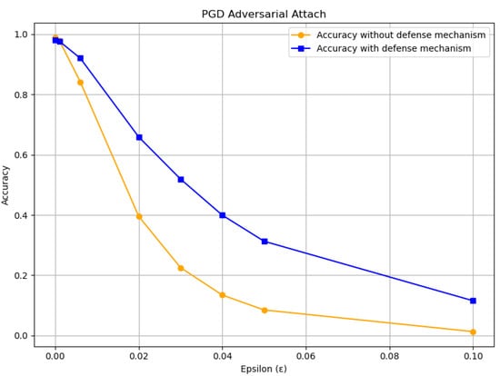 Accuracy of CNN classifier after PGD adversarial attacks.