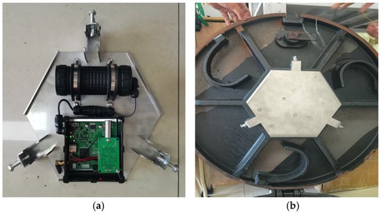 Inspect the cover sensor equipment. (a) Micro collection equipment and fastening device. (b) Collection equipment installed on inspection cover.