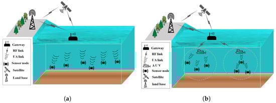 Since the 20th century, multiple countries have accelerated the development of UUVs to counter asymmetric threats []. Beginning in the mid-20th century, the United States, Japan, and European nations initiated research on UAC. As early as the 1950s, the U.S. military pioneered the application of UAC technology for intelligence gathering and reconnaissance. In 2016, the U.S. Defense Science Board released the “Next Generation of Unmanned Underwater Systems” report, outlining strategic recommendations to maintain underwater dominance []. In 2022, the U.S. introduced the Manta, a next-generation UUV designed for advanced underwater missions []. That same year, the U.S. Navy completed shipboard integration testing of the “Knifefish” UUV, validating the critical role of secure UAC links []. Additionally, the Navy acquired the “SwarmDiver” UUV, emphasizing the necessity of stable communications for swarm operations. Russia’s Poseidon nuclear-powered UUV encountered UAC signal attenuation challenges during deep-diving tests in 2019, while its nuclear payload capability imposed stringent security demands []. In 2021, Japan prioritized high-speed, high-capacity UAC under its Multi-Domain Integrated Defense Force initiative to enable coordination between UUVs and surface vessels. In 2022, France’s Naval Group and ECA Group developed the “A18-M” UUV and “T18-M” towed sonar for Belgium and the Netherlands as part of their Anti-Mine Joint Solution, relying on robust UAC for collaborative mine countermeasures.