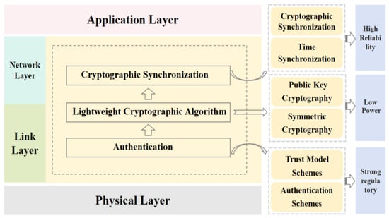 WSNs face significant challenges due to harsh channel conditions. These include limited bandwidth, high delays, multipath effects, and signal fading. Network operations depend on node-to-node communication, where node conditions directly impact both time and cryptographic synchronization [,,]. Time synchronization supports cryptographic processes by providing precise timing data. This accuracy enables reliable cryptographic parameter configuration, such as update intervals, ensuring secure key management in critical applications. Cryptographic synchronization reciprocally strengthens time synchronization by preventing data tampering, maintaining system integrity []. For data transmission, bandwidth limitations require optimization strategies []. Joint coding techniques effectively enhance transmission efficiency within these constraints. During data processing, time synchronization triggers cryptographic operations, while cryptographic logs provide timestamped records for system audits and fault analysis. This dual method ensures robust network performance through coordinated synchronization.