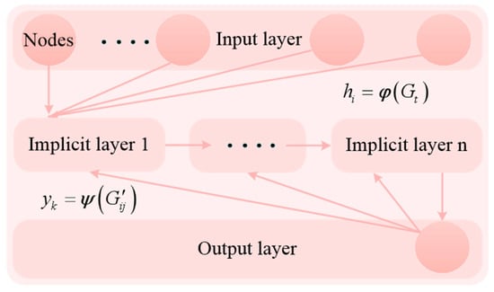 The role of the adaptive function is to enhance the training speed of the model. By dynamically adjusting the parameters of the recurrent module based on the adaptive function, the network parameters that meet the model’s requirements can be obtained, thereby improving the model’s performance or the stability of the system. Artificial recurrent neural networks iteratively explore the number of hidden layers and the number of nodes in each hidden layer, while the number of input and output nodes remains fixed. The structural configuration of the network is shown in Figure 1.
