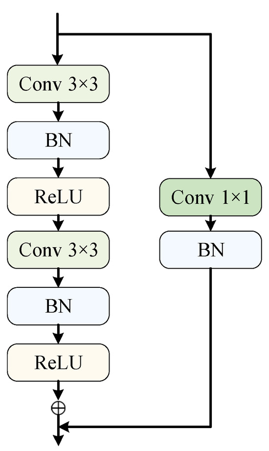 In this case, the RDBConv is shown in Figure 4. Unlike simply stacking dual-convolution layers in the encoder section, this structure innovatively embeds a residual branch composed of convolutional layers and batch normalization layers, allowing the input feature image to be passed directly to the output, thus preserving and transferring the detailed information of the input image at multiple layers. The residual connection, which bypasses input features to deeper layers, facilitates the model to learn useful features more easily during training while preventing performance degradation associated with network depth. This mechanism ensures robust gradient flow even in deep network configurations, consequently enhancing both training efficiency and overall network performance. Specifically, during the generation of illumination and reflection components, this architecture significantly improves feature propagation and learning capabilities, which can more accurately retain the information of the original image, thus generating feature-rich illumination and reflection components and reducing the degree of distortion of the enhanced image. In this way, the network not only learns the features of the image better but also effectively maintains the naturalness and authenticity of the image, which is particularly important for image enhancement.