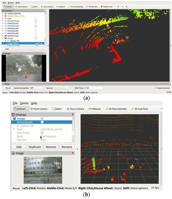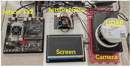 To verify the effectiveness of the proposed methodology in real-world environments, an actual LiDAR system was assembled. This hardware system mainly uses LiDAR data acquisition and camera image processing. An embedded platform from NVIDIA, Jetson Nano and Jetson TX2, is used to collect data from the sensor system. The signal processing system is based on the ROS2 platform under the Ubuntu environment, combining C++ and Python languages.