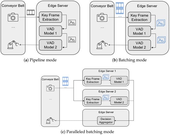 Currently, there is no standardized benchmark for system-level studies that evaluate end-to-end latency of a VAD system in real-world manufacturing settings, primarily due to the wide variation in industrial deployment environments, as pointed out in [19,20]. Nonetheless, individual research efforts have reported latency figures for specially designed models under lab conditions. For instance, recent methods like FastFlow [21] and DRAEM [22] achieve inference times around 30–50 ms per image, meeting the typical latency threshold for real-time industrial inspection, which is often considered to be under 100 ms per frame. However, these results generally reflect only the model inference time and do not account for the full pipeline, including data transfer, preprocessing and integration with manufacturing workflows, leaving a gap between academic benchmarks and practical deployment needs. There are also ongoing efforts, like IM-IAD [23], to create a dataset for industrial image anomaly detection tasks.