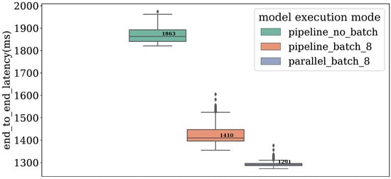 - Parallel mode batch of 8: As illustrated in Figure 2c, this setting allows the two models to execute concurrently for the same input. This setup was tested with a batch size of 8, we named it parallel_batch_8 in the plot.