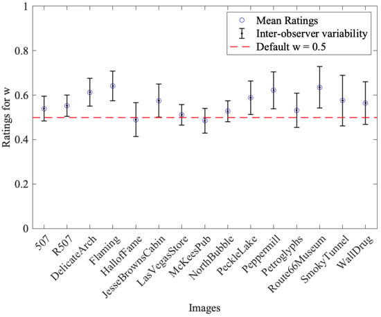 Observers were shown images at a default w = 0.5 and asked to adjust this value to what they found visually most appealing. Results are shown in Figure 13.
