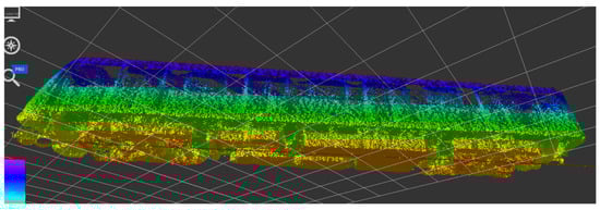 Under identical conditions, the Trimble X7 stationary scanner acquired point cloud data at 19 scanning positions, requiring approximately 4 min per position (75 min total). Upon completion, both the point cloud dataset and panoramic imagery were immediately accessible via the control terminal (Figure 10).