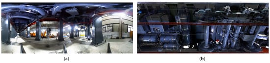 The Z+F scanner required 20 stations, with each station taking 4 min, resulting in a total scanning time of 140 min. The extended duration is primarily due to the need for manual leveling of the Z+F device, which reduces overall scanning efficiency. However, the Z+F is equipped with an integrated fill light, allowing it to capture images and point cloud data with ideal brightness, as illustrated in Figure 11.