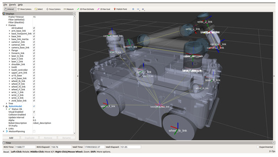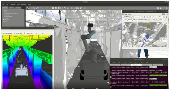 Gazebo is an open-source simulation platform widely adopted in robotics research and development [46,47,48,49]. It plays a significant role in advancing robotic technologies by offering a comprehensive set of features. With support for multiple physics engines, Gazebo enables realistic simulation of physical interactions, including motion, collisions, and contact dynamics. It also emulates a wide range of sensors, including LiDAR, RGB cameras, and depth cameras, thereby creating a virtual testing environment with high fidelity to real-world conditions.