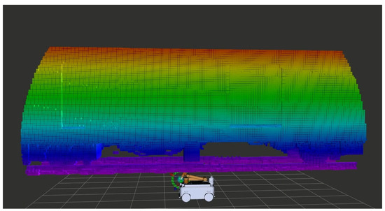 Considering scanning efficiency, cost-effectiveness, and data quality, the Trimble X7 scanner was selected as the most suitable data acquisition device. This choice ensures both efficient and accurate data collection, laying a solid foundation for subsequent simulation system development and inspection tasks. It is important to note that metro trains of different models vary in structure, and even those of the same model may exhibit variations in the positions of equipment and components due to manufacturing tolerances and long-term usage. As a result, the Aurora data acquisition system does not currently offer universality. To address this situation, it is necessary to perform data collection specifically for each metro train requiring robot-assisted inspection.