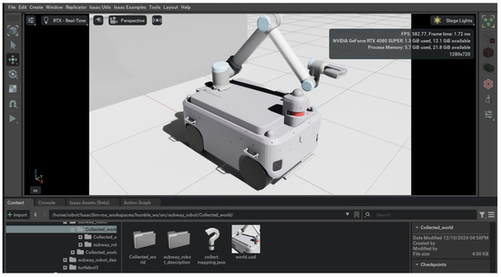 As urbanization speeds up and city populations grow, urban transport faces increasing pressure in the rail transit field. Rail transit plays a key role in improving urban residents’ quality of life [37]. To boost the operation and maintenance efficiency and response capability of rail systems, digital twin and simulation technologies have been gradually introduced into key areas such as train control systems, vehicle scheduling, energy consumption management, and track condition prediction. In addition, research has explored virtual train composition, traffic simulation, and safety control strategies under a vehicle-to-infrastructure collaboration framework [38,39,40,41]. These achievements have not only promoted the intelligent development of rail transit but also offered a technological foundation and simulation experimental platform support for urban smart mobility. In view of the complexity of undercarriage inspection robot systems and the vast amounts of data (including laser point clouds, depth images, and video streams, among others) generated during their operation, this research will first develop a fundamental simulation tool based on Gazebo, which is deeply integrated with ROS, with the goal of exploring design methods for undercarriage inspection robot simulation systems. Subsequently, building on this foundation, the research will further investigate the development of more advanced simulation tools using Isaac Sim.