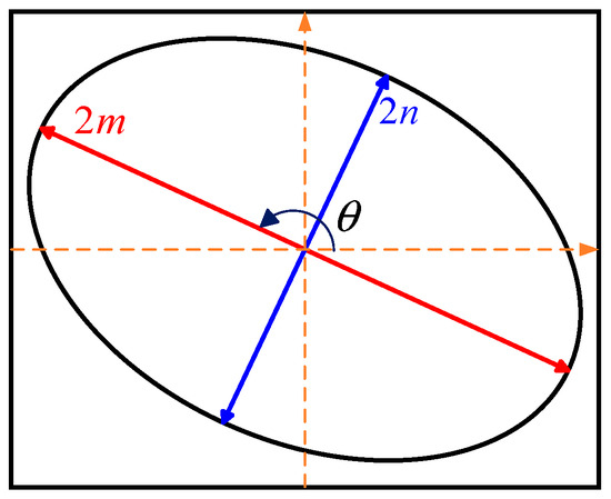 The ellipse curve characteristics for fault diagnosis will be presented in this section. Figure 5 presents the ellipse slant angle (θ), major axis length (m), and minor axis length (n), all of which are characteristic parameters of the ΔU-I ellipse curve. Furthermore, the eccentricity is also one of the prominent parameters of an ellipse. They can be deduced from (10) as follows:
