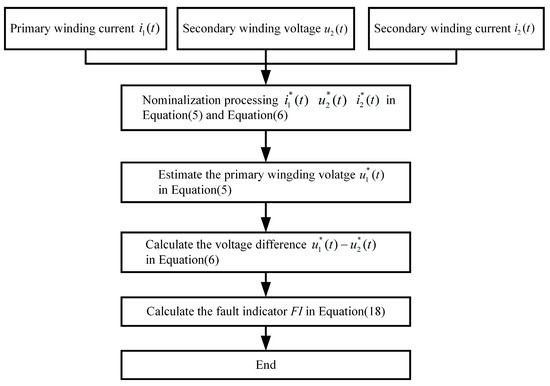 Through the above analysis, we only need to acquire the data of the primary winding current and the secondary winding voltage to calculate the fault indicator because the primary winding voltage can be derived from the primary winding current.