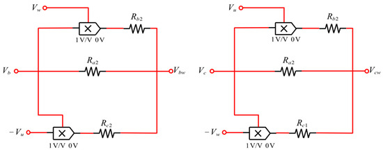 In order to verify the dynamics of the system, it is first necessary to build an analog circuit capable of realizing the ‘−tanh(.)’ hyperbolic tangent function [27]. The circuit module consists of eight resistors, two operational amplifiers, two transistors, and a DC source. The circuit schematic is shown in Figure 13.