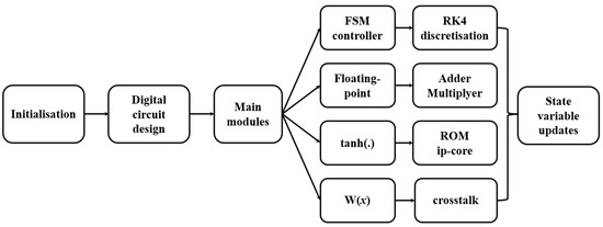 FPGA is a type of silicon chip that can be reprogrammed, offering the benefits of high integration, abundant on-chip resources, and theoretically unlimited programming cycles. The initial conditions and component parameters of the system can be set using hardware programming languages to achieve precise control. This allows for accurate verification of the system’s dynamic behavior and is highly suitable for implementing nonlinear oscillators that are extremely sensitive to changes in parameters and initial values.