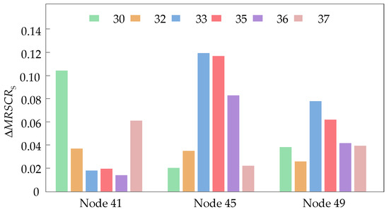 The short-circuit ratio at the machine end of the new energy field station (nodes 43, 47, 51) and the short-circuit ratio at the grid-connected point (nodes 41, 45, 49) when the thermal power unit at node 32 is in synchronous condenser operation were calculated, and the specific data are shown in