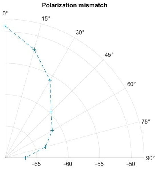 Overall, Figure 19 demonstrates that even modest angular deviations between antennas can significantly affect the radiation pattern and received power, emphasizing the importance of precise orientation in UAV communication systems [].