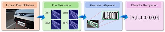 - Pose Estimation and Alignment: A deep learning-based model is utilized to detect the four corner points of the license plate, followed by perspective transformation to rectify the image.