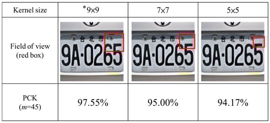 - Kernel Size Modification: Reducing the number of 9 × 9 kernels from two to one increased PCK accuracy to 97.55%. In contrast, replacing them with smaller 7 × 7 or 5 × 5 kernels led to performance degradation (Figure 9).