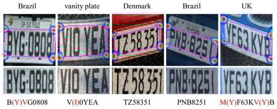 - Xu, H.; Zhou, X.-D.; Li, Z.; Liu, L.; Li, C.; Shi, Y. EILPR: Toward end-to-end irregular license plate recognition based on automatic perspective alignment. IEEE Trans. Intell. Transp. Syst. 2022, 23, 2586–2595. [Google Scholar] [CrossRef]