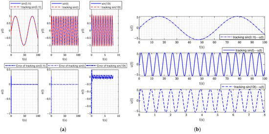 Figure 9 is the track responses of sinusoidal signals of different frequencies under the proposed method and the initial state of the system is set as . The same conclusion as that in Figure 6 can be obtained from Figure 9.