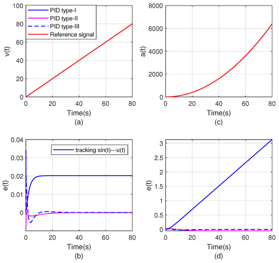 It can be seen from Figure 10 that the type-ii control loop under the proposed method can achieve zero steady-state position and velocity errors, and the type-iii control loop under the proposed method can achieve zero steady-state position, velocity and acceleration errors. Therefore, the method proposed in this paper is effective in high-type control loops and can significantly improve the tracking ability of the system.