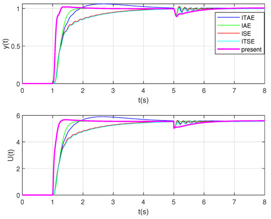 To further illustrate the effectiveness and advantages of the proposed method, it is compared with other different methods such as Integral of Square Error (ISE), Integral of Time Square Error (ITSE), Integral of Absolute Error (IAE), Integral of Time Absolute Error (ITAE). It can be clearly seen from Figure 11 and Figure 12 that the rise time, stabilization time, and overshoot amount of the system under the proposed method have been significantly improved.