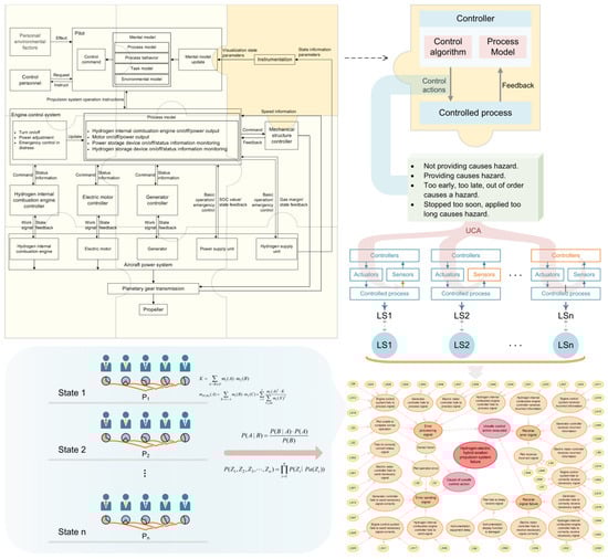 In the field of civil aviation engines, risk capture analysis is indispensable. Chain-based analysis methods, such as Fault Tree Analysis [], typically commence with the identification of the most severe accidents within a system. These methods systematically analyze potential hazards by tracing the chains of faults and their physical interrelations. Nowadays, with the gradual development of aviation technology and the enhancement of the integration of aircraft and engines, traditional failure model analysis methods, which start from failures, are no longer applicable for the capture of control defects of complex engine systems when dealing with complex control logic, common cause failures, and hidden design issues.
