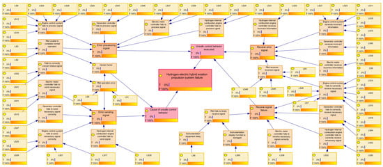 As aviation has strict limits on the weight and size of power systems, the specific power and power density of existing hydrogen power systems are difficult to meet the requirements of aircraft flight, so another option is to utilize hybrid power systems []. The system development process requires a detailed risk analysis to ensure that the aircraft meets the safety constraints. However, the complex interactions due to the highly integrated components and the inherent physical properties of hydrogen are major constraints of the safety, and the lack of engineering data at the early stages of the design process to support quantitative analyses can make it difficult to accurately identify key risk factors in the system in detail, which may lead to serious design defects in the aircraft. However, most of the current research focuses on aircraft design and performance optimization, and very little research has focused on the risk analysis in hybrid propulsion systems [,,].
