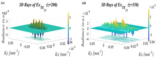 In Figure 7 it can be clearly seen that TE23 is the most influential mode in terms of the dispersion propagation. This is reflected in a wide angular spread (as can be seen in Figure 7d).