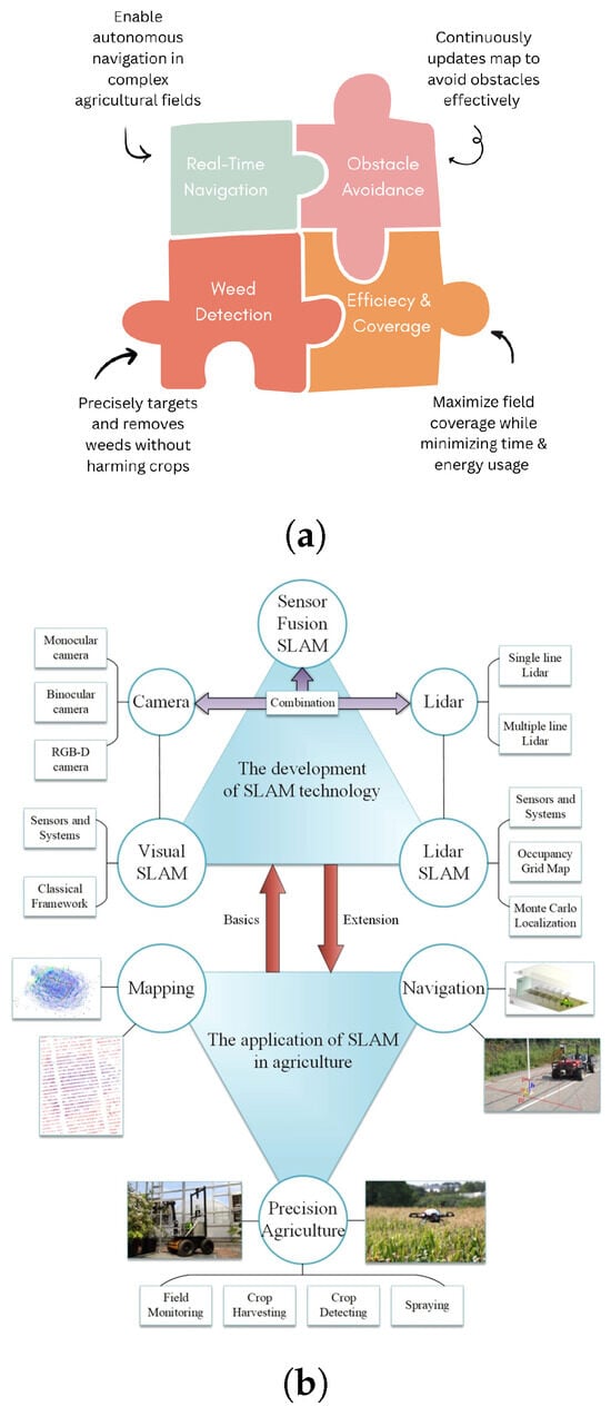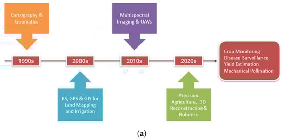 (a) Key upgrades in each industrial revolution [48]. (b) Robotics application in various aspects of agriculture [49].