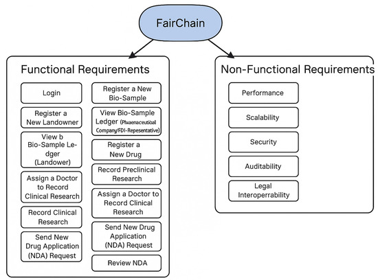 Future deployments will validate these NFRs under simulated regulatory and scientific workflows. Figure 3 illustrates how the requirements (functional and NFRs) support FairChain.