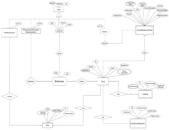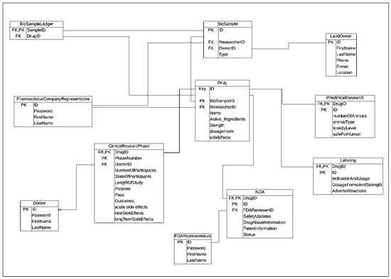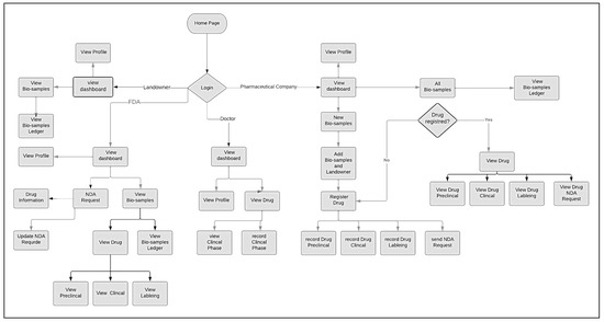 - Login: Users (including pharmaceutical company representatives, FDA representatives (reviewers), doctors, and landowners) can log into the system. The system prompts them to enter credentials, which are then validated. If correct, the user gains access; otherwise, the login is denied.