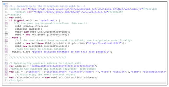 System integration is the process of combining sub-systems into a single system in a comprehensive manner and ensuring that each component is working properly. Our website was connected to phpMyAdmin database by constructing a connection in our PHP files using JavaScript. After that, we added our functions sequentially to ensure that they all worked correctly. The last step was to connect our website with the blockchain via Web3.js, which is a collection of libraries allowing for interaction with a local or remote Ethereum node using HTTP, IPC, or WebSocket. The process is illustrated in Figure 18.