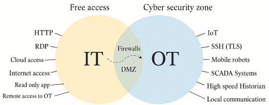 In contrast, the OT domain encompasses autonomous, isolated, and self-contained systems commonly found in industrial and critical infrastructure settings. These systems operate on proprietary software platforms and focus on the real-time control, monitoring, and automation of physical processes and intelligent machine infrastructures. The OT environment is not inherently secure and is typically segregated from IT networks to reduce risk and ensure operational continuity.