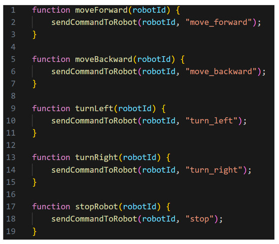 This network utilizes two secure communication protocols to connect all its components. For communication between browser-based clients and the server, the WebSocket Secure (WSS) protocol is used, while mobile robot clients communicate with the server via the WebSocket (WS) protocol. Figure 5 illustrates the communication flow using these technologies.
