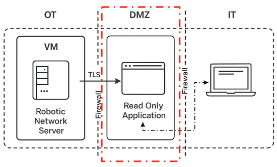 This paper has developed an infrastructure model for robotic networks by securing data within the OT domain, with the possibility of creating read-only applications in the DMZ domain.