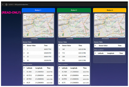 This paper is organized into seven sections, each addressing a distinct component of the proposed solution for secure robotic networks designed to support emergency response operations. Section 2 focuses on the definition and development of the robotic network within the OT domain, detailing the communication protocols, software and security design strategies, client–server interaction model, and mechanisms for data storage and archiving. Section 3 describes the development of read-only applications within the DMZ domain, emphasizing the use of enforced firewall rules to ensure unidirectional data flow (from OT to DMZ) and prevent remote control from external layers.