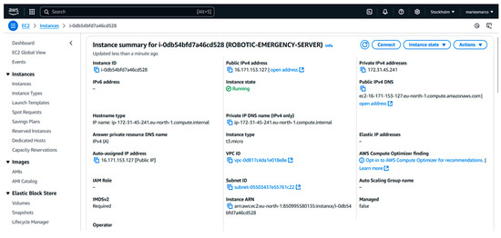 The first step in the development of the robotic network involves the definition and securement of the command and control center. This is implemented as a virtual machine (VM), deployed and secured using the AWS EC2 service. This virtual instance hosts a robotic network server and enables remote user access through a web-based platform. The VM runs on a Windows Server operating system and can be accessed via the Remote Desktop Protocol (RDP), following a defined authentication and connection procedure: