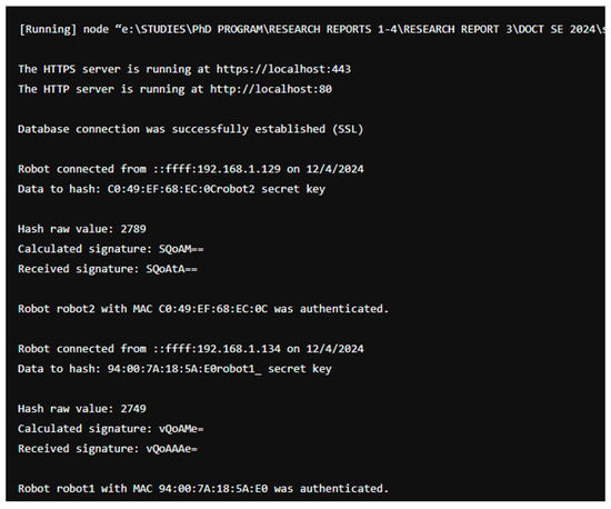 Section 4 presents the results of robotic network development, including practical observations and system log excerpts. Section 5 discusses the current system limitations, especially regarding scalability, authentication flexibility, and performance under high-load scenarios. Section 6 outlines future research directions, such as implementing network redundancy and conducting broader real-world testing. Finally, Section 7 delivers the concluding remarks, summarizing the contribution and significance of the proposed architecture.