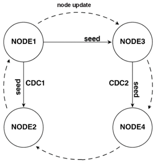The second research direction focuses on the redundancy (also with two levels) of the database system. The authors propose a DBMS redundancy solution by utilizing a NoSQL Cassandra system. This technology provides increased data availability in a horizontal direction in the event that the online node enters a failure state. Figure 20 illustrates the connection and configuration of the data centers.