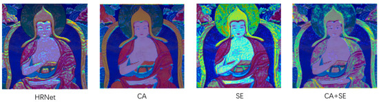(2) In this paper, a Coordinate Attention [6] mechanism is incorporated into the bottleneck section of HRNet. This incorporation enhances the model’s perception of spatial and channel information, allowing for accurate identification of the principal figure and its practical implementation in Thangka images, thereby resolving occlusion issues. After feature extraction, a SENet module [7] is appended to reinforce key feature channels. Application of the SENet module improves the adaptive regulation of channel weights, enabling effective discrimination among the principal figure, implements, and background, thereby achieving more accurate semantic segmentation.