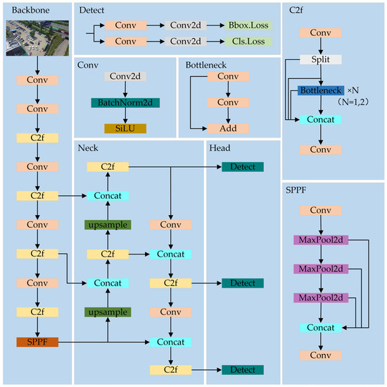 YOLOv8 [14] has five versions, ranked from smallest to largest by model size: YOLOv8n, YOLOv8s, YOLOv8m, YOLOv8l, and YOLOv8x. Given the constrained computational resources of edge devices, this study focuses on YOLOv8n—the most compact and fastest version—whose architecture is depicted in Figure 1.