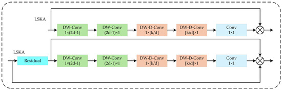 Large Separable Kernel Attention (LSKA) [20] is a technique that achieves efficient feature capture and long-range dependency modeling by decomposing large-kernel convolution operations. It splits traditional convolution into smaller kernels while retaining the advantages of large-kernel convolution in capturing global features, making it particularly effective for processing sequential data.
