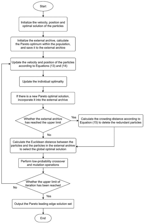 The flowchart of the MOPSO algorithm is shown in Figure 9.