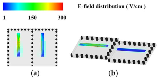 E-field distributions of (a) latitudinally arranged slot antenna array and (b) ladder-type longitudinally arranged slot antenna array.