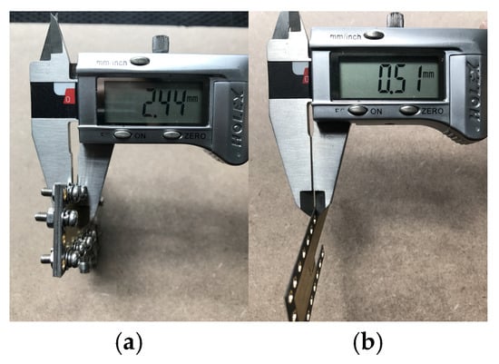 To evaluate the discrepancy between simulated models and fabricated objects, as depicted in Figure 13, the fabricated thickness of the air gap is calculated based on the measured thicknesses of separate layers and the whole structure. Here, we take multiple measurements and average the testing values to minimize the accidental error. The six calculated values of thickness are 0.04 mm, 0.04 mm, 0.043 mm, 0.037 mm, 0.043 mm, and 0.047 mm, respectively, and they average to be 0.042 mm.