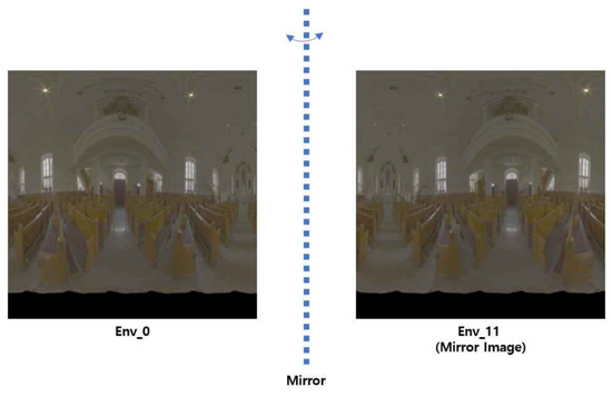 To further augment the dataset, each env map was horizontally shifted in 20-pixel increments (Figure 4), generating ten additional images per original map. Additionally, horizontally mirrored versions of each image were similarly shifted (Figure 5), producing 11 more images. This resulted in a total of approximately 50,600 augmented images, from which 40,000 were selected for training.