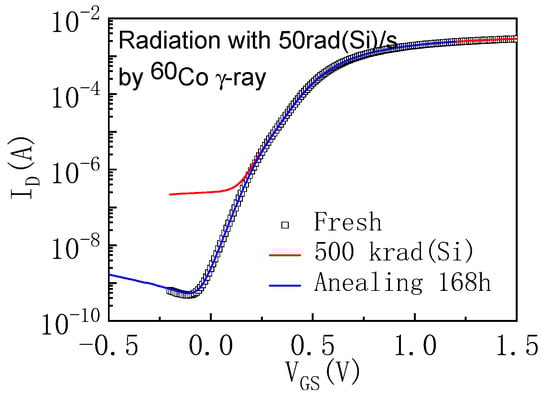 The transfer characteristic curves (ID-VG curves) before and after total dose irradiation and annealing tests are shown in Figure 1.