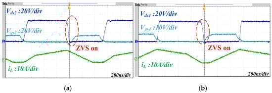 The ZVS on operation verification: (a) step-down; (b) step-up.